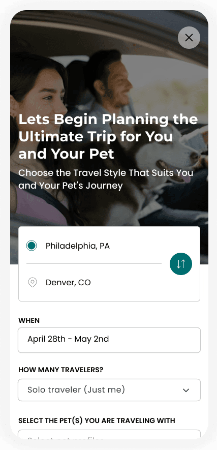 An AI-powered planner that removes the complexity of pet-friendly travel by matching your pet’s needs with verified routes and stops.